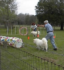 LaWayne and Georgan Wyatt work the dogs in agility.